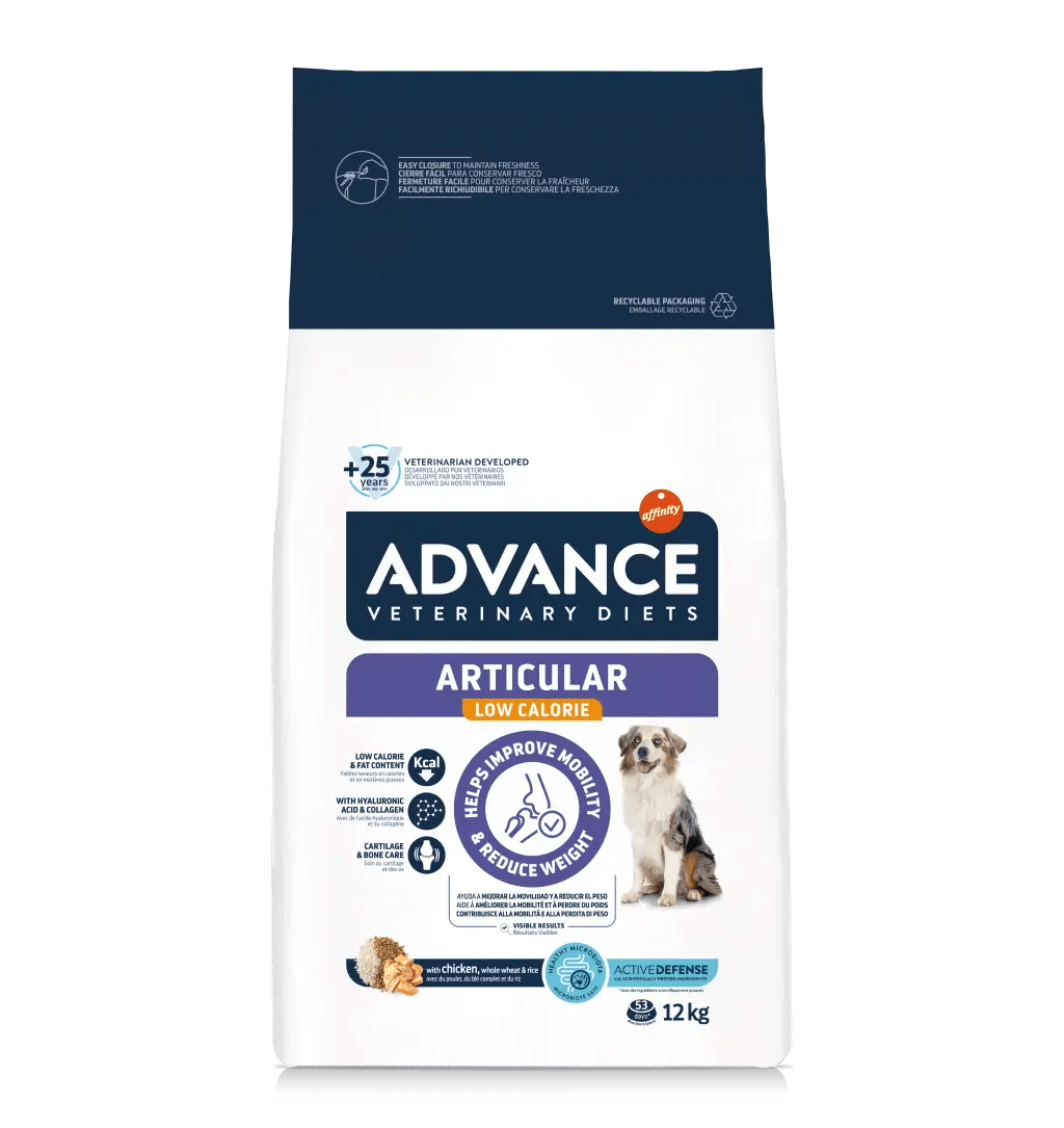 Advance Veterinary Diets Articular Low Calorie este o hrană completă și echilibrată, concepută pentru câinii adulți supraponderali sau obezi care suferă de afecțiuni articulare. Formula cu conținut caloric redus sprijină controlul greutății, reducerea presiunii asupra articulațiilor și îmbunătățirea mobilității.